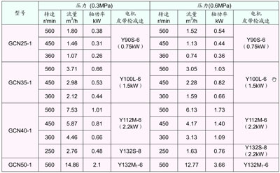 GCN系列工作性能(0.3MPa、0.6MPa)